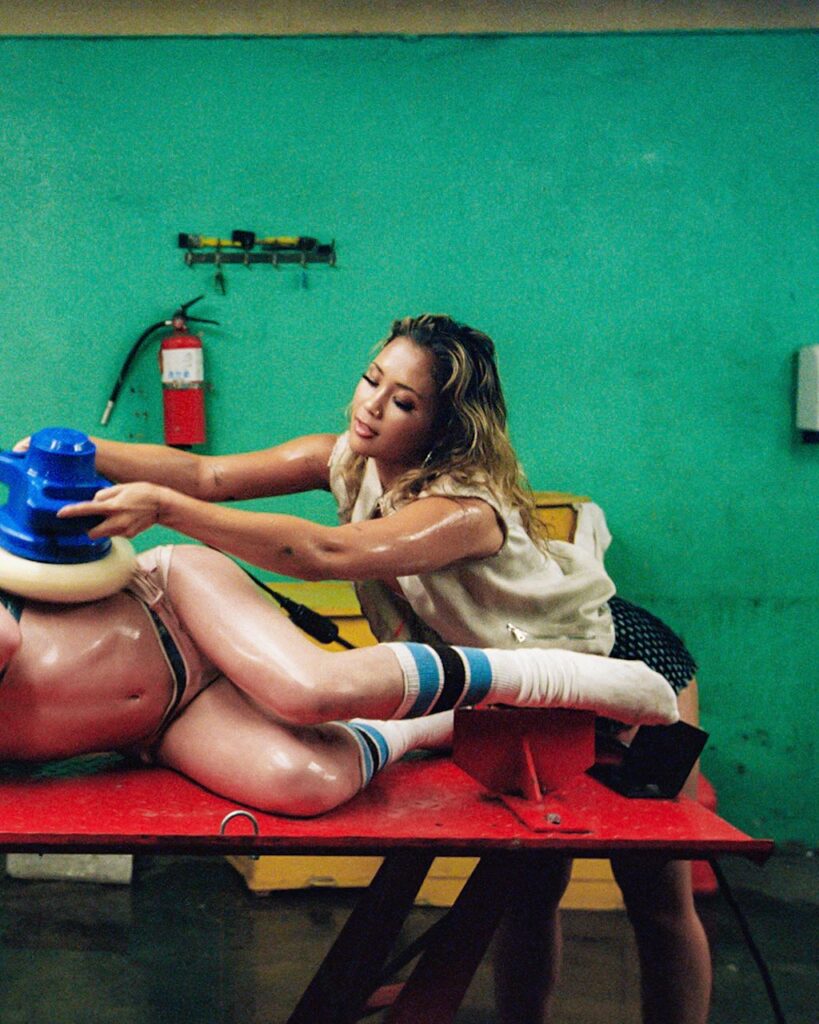 The visuals also poke fun at the naysayers who have cast her race and classification into question, with Tyla’s calves, shins, and feet being colored blue with spray paint.